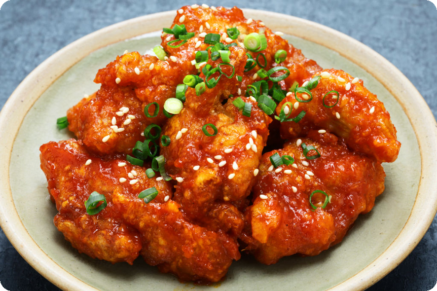 바삭한 튀김과 풍부한 소스 조합